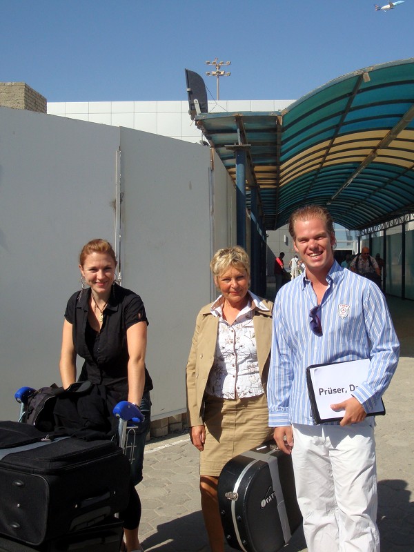Alles aufregend hier im Flughafen von Hurghada. Aber wo geht es bitte schön zum Ausgang? Da sehe ich so einen blonden jungen Mann mit einem Schild in der Hand, auf dem mein Name steht. „Ich heiße Patrick“, meint der coole Typ. Man merkt sofort, dass der es drauf hat. Ach, und da ist ja auch Daniela. Ebenfalls eine, die das Sagen und den Durchblick hat. Nett die Beiden. Wie schön, dieses Gefühl des Willkommen seins.