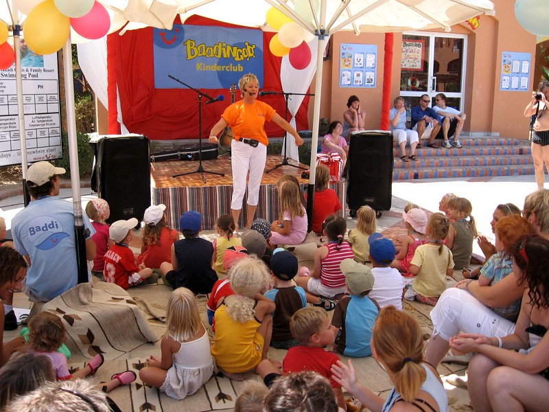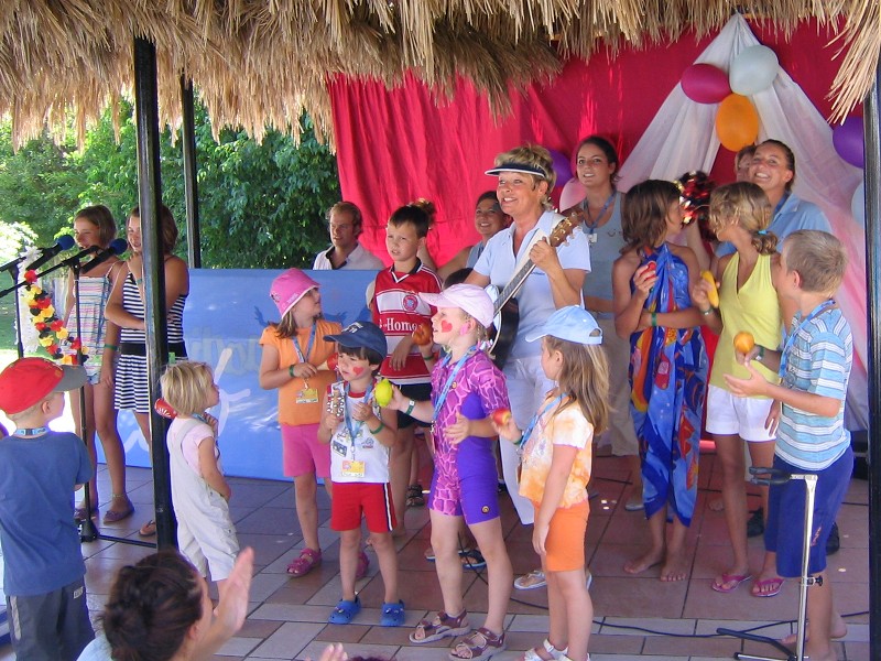 Nächster Tag. Sonne pur. Herrlich! Teambesprechung um zehn. Thema Galaabend. Heute Abend! Daniela, Fanny, Patrick, Suse und ihre Baddis haben eine bravouröse Arbeit geleistet. Ein faszinierendes Bühnenbild, voller Farbe, Fröhlichkeit und Verheißung lässt die kleinen und großen Zuschauer sich auf die Show freuen. Hinter der Bühne gespannte Konzentration. Lampenfieber pur. Gehört halt dazu. Als dann die tiefe, etwas gruselig klingende Stimme „Showtime“ aus dem Off ertönt, das Licht angeht, Patrick und Suse die Show anmoderieren und die Nennung meines Namens mich auf die Bühne holt, ist alle Aufregung verflogen und nur noch Freude in mir. Ich bin dabei!