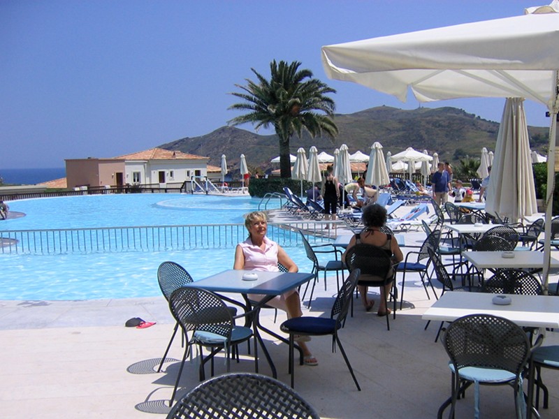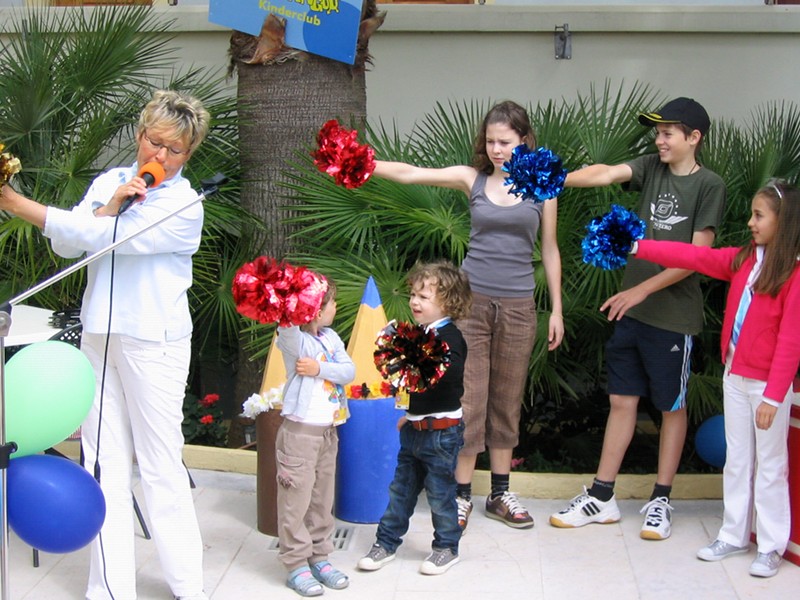 Den Nachmittag nutzten wir – der Gerd (beziehungsweise Zauberer Phantaro), Knut (der Macker der Kinderanimation), Kinderliedermacher Eddi und ich – zum Erkunden des Geländes. Allein fünf Pools gibt es dort. Man kann aber auch im Meer baden. Überall kann man das tolle Essen genießen. Echt super auch der Kinderclub und, und, und! Hammermäßig.