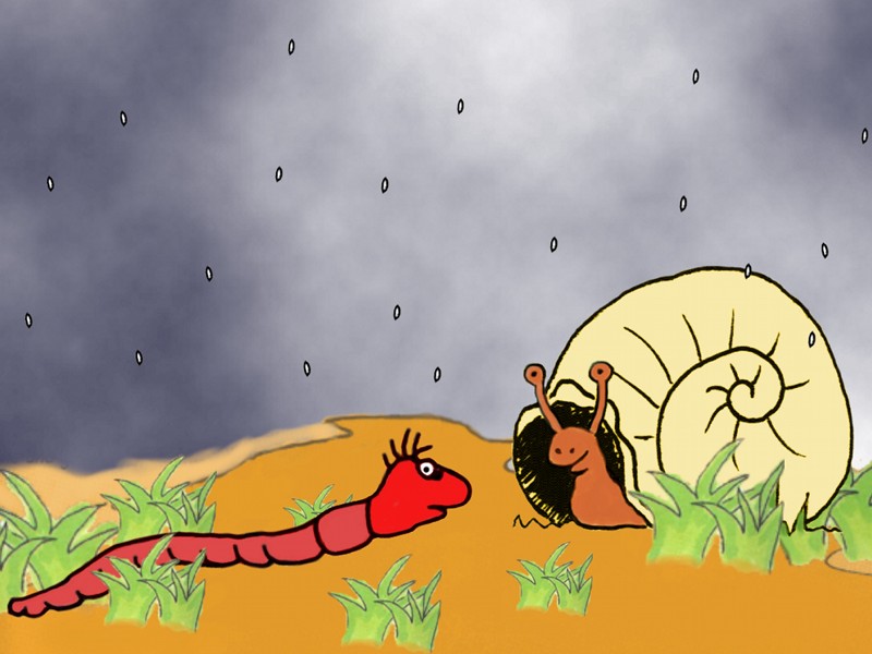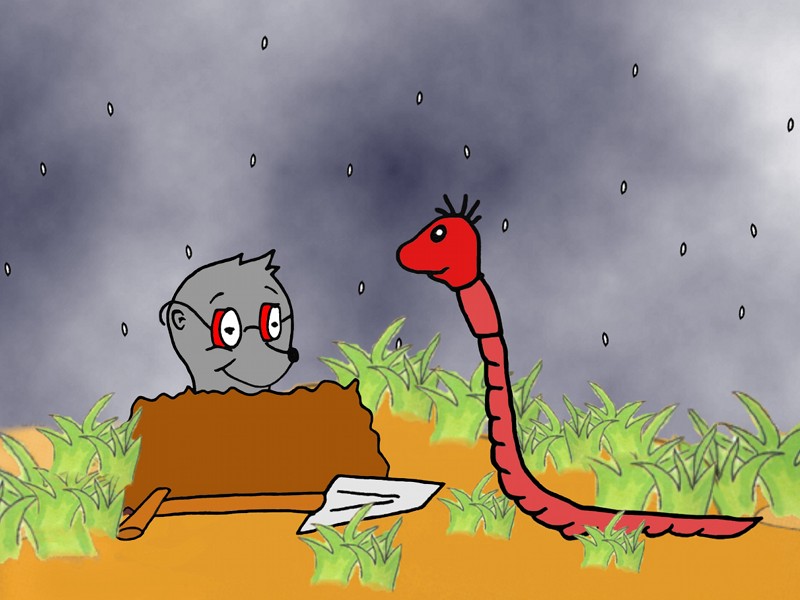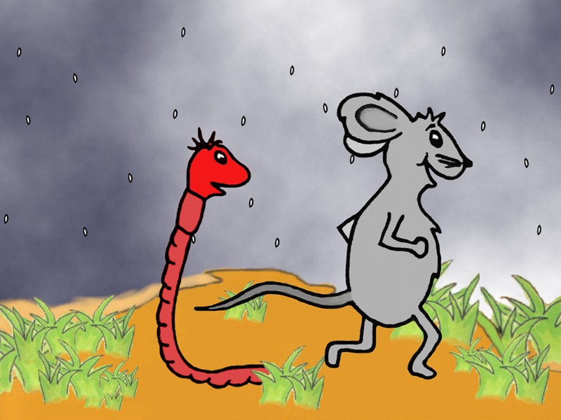 Die Maus sagt zu dem Regenwurm: „Der Regen ist mir schnurz.
