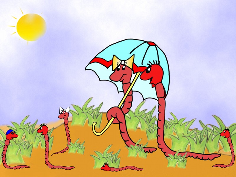 Da ringelt sich durch Tag und Tau, ’ne wunderschöne Regenwurmfrau.